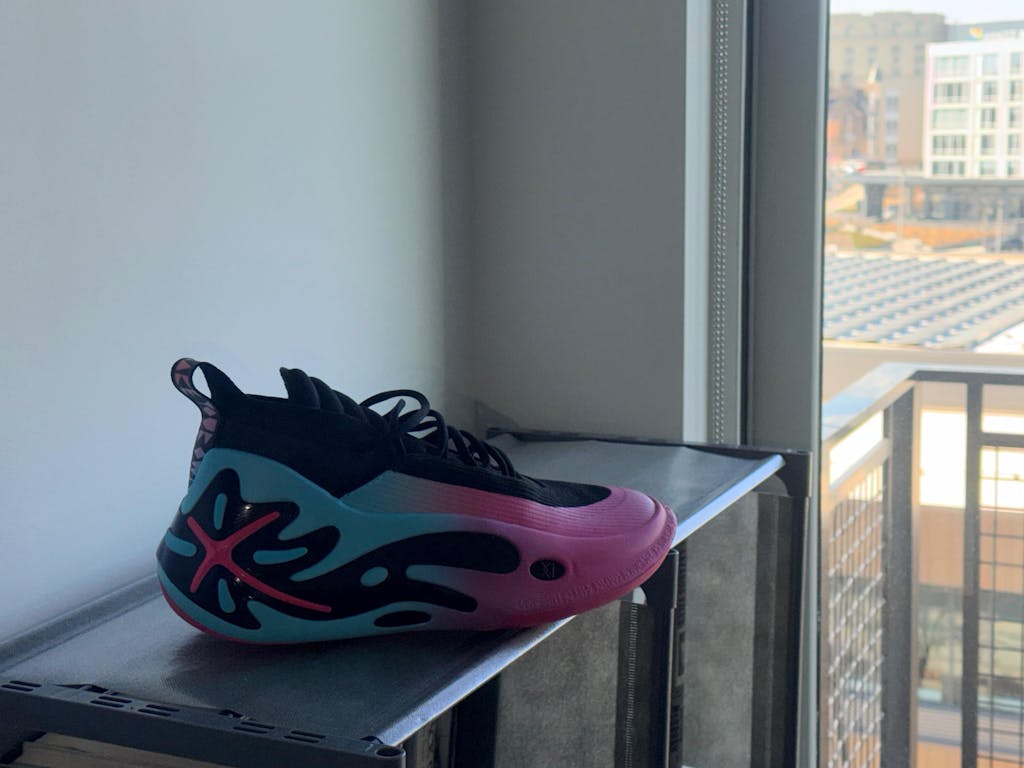 EVA midsole structure, along with the special-shape TPU on heel decorated with elements representing Dwyane Wade's career, for lightweight, stability, and support, assisting in making turns to multiple directions during a game.